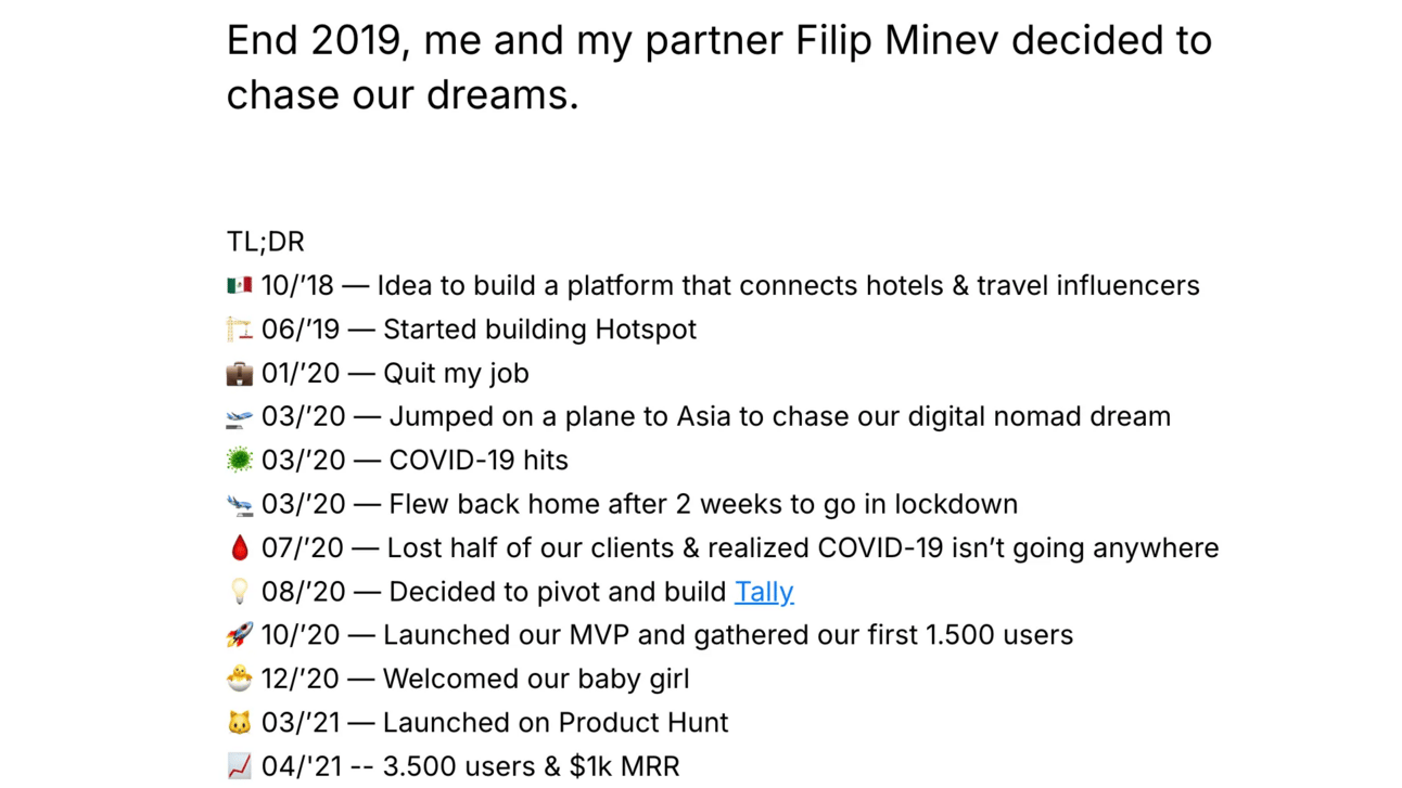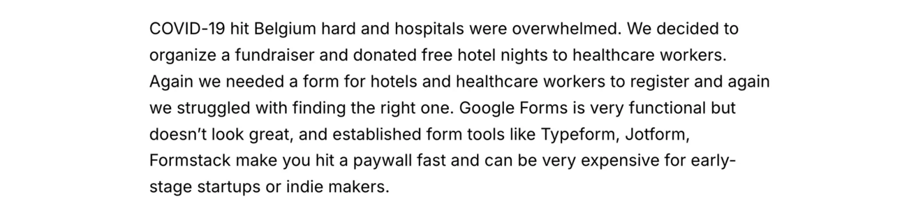 Well, the story didn’t come from the form builder at first. Marie and Filip tried to build a platform to connect Hotels and Traveling Influencers. Well, they did it at the wrong time. COVID-19 killed their product ruthlessly.