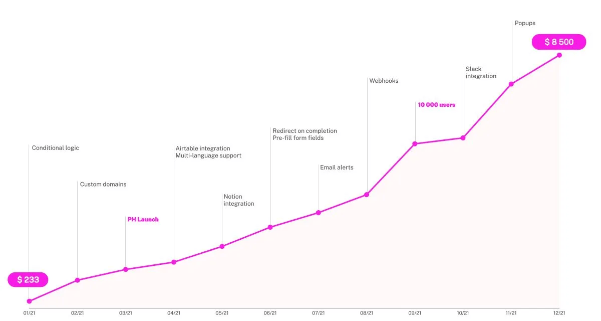 February 2022: User count grew to 20,000 and MRR hit $10,000.