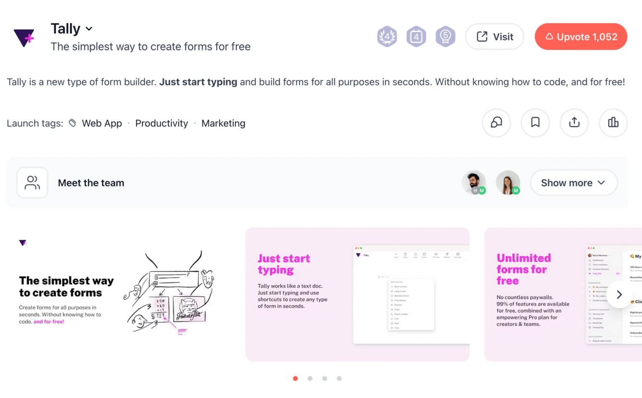 September 2022: Launched Tally Pro and added native integrations with Airtable, Notion, and Stripe.
