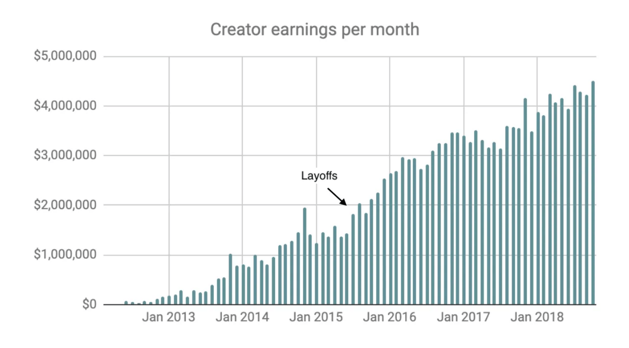 Once the creator economy took off around 2020, Gumroad was perfectly positioned. By letting creators own their audience and avoiding a centralized marketplace, they scaled through creators’ own promotion.