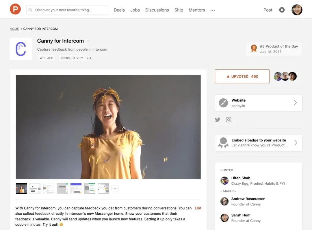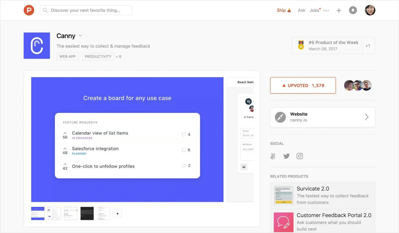 In 2017, Canny launched on Product Hunt in March, initially attracting 5 paying customers.